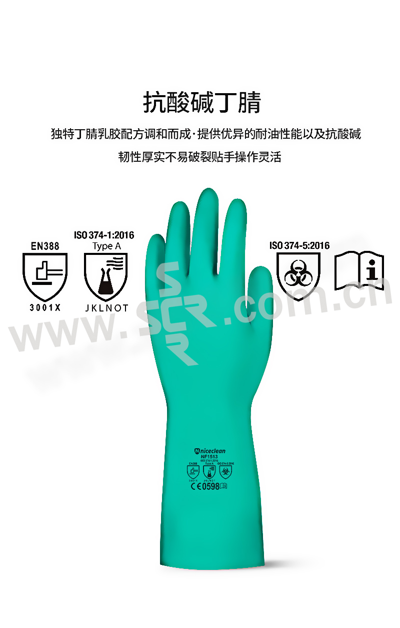 NICECLEAN/好清 耐酸碱丁腈手套 NF1513 M 61±5g 棉绒内衬 1双