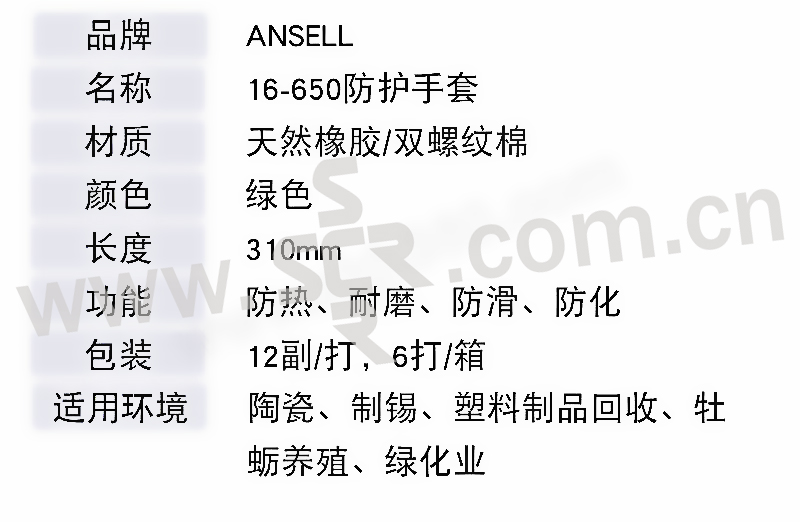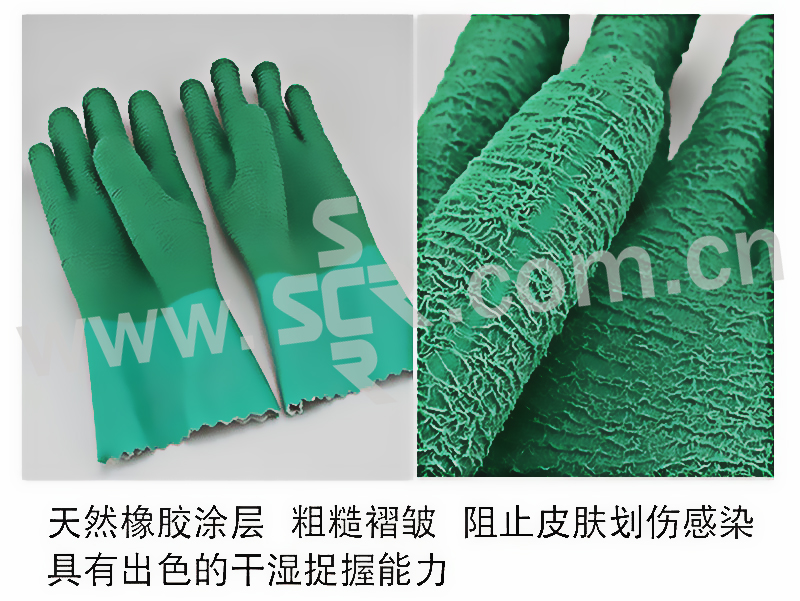 ·天然橡胶涂层,双螺纹棉衬里,长度310mm·手套上粗糙皱褶处理,具有出色的干湿抓握能力,同时仍能保护双手不受锋利边缘的损伤·符合人体工程学的设计使得手套更贴合手型并提供更安全的抓握力·良好的避震,防切割性能,更舒适·一定的防高温性能
