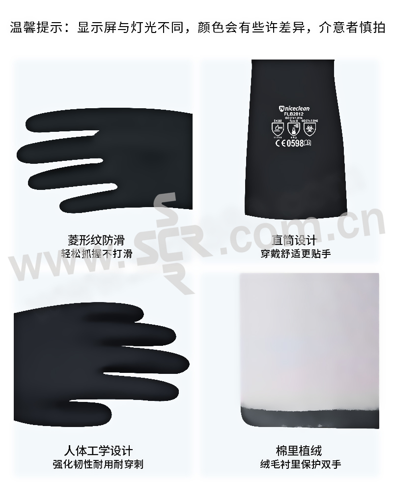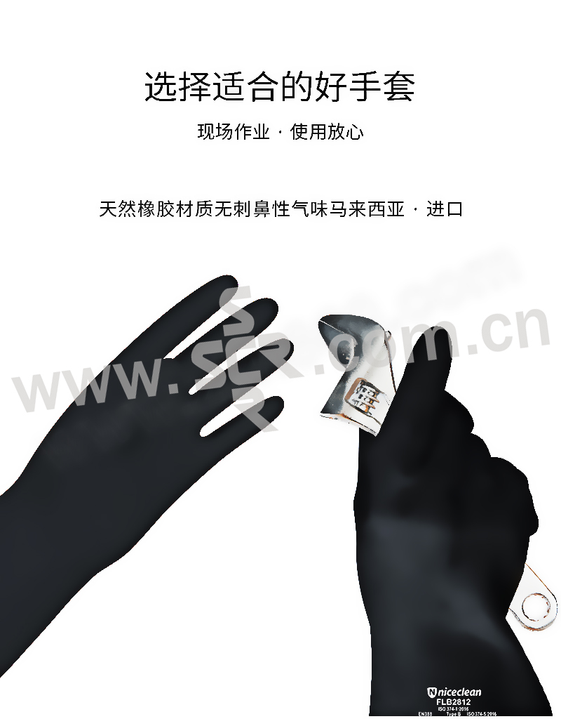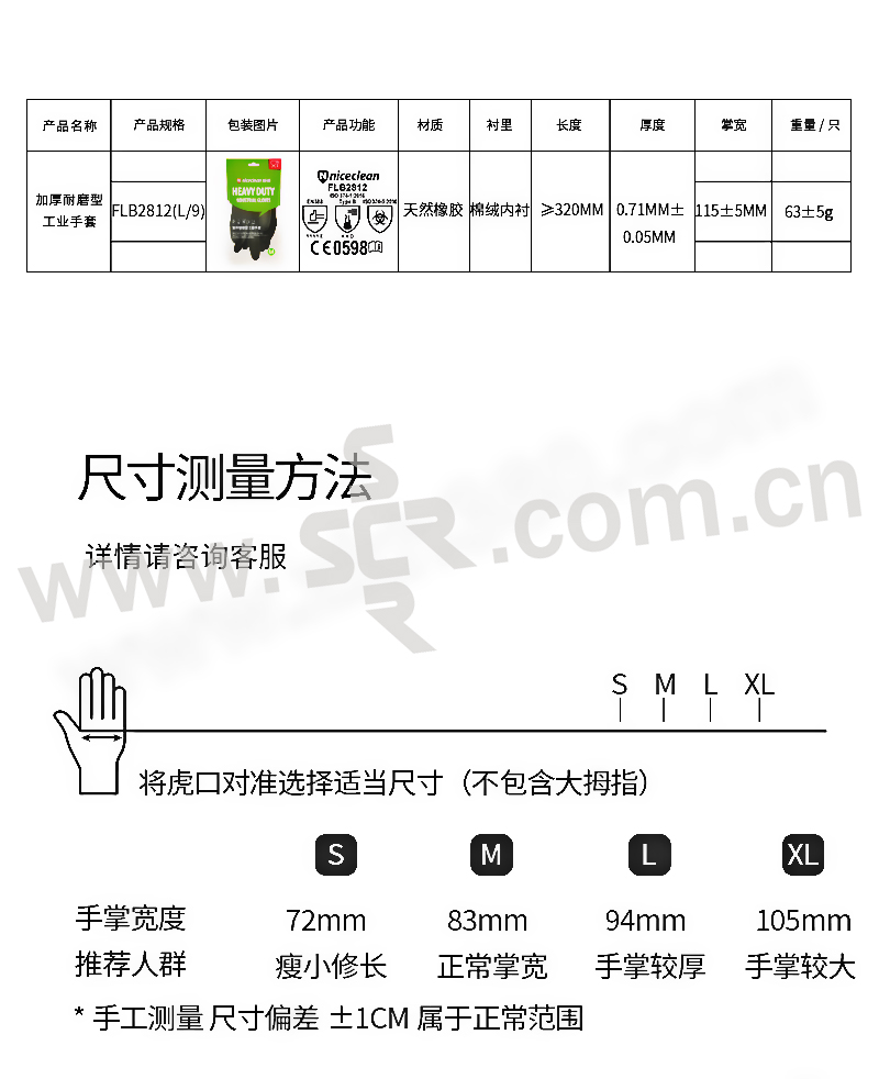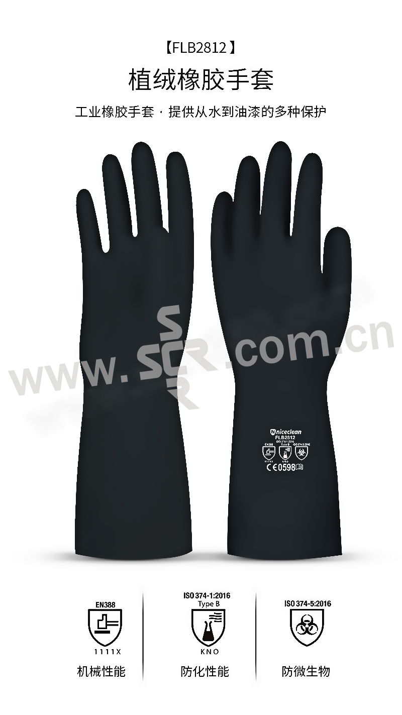 NICECLEAN/好清 加厚耐磨型工业手套 FLB2812 L(9) 126±5g 天然橡胶 棉绒内衬 1双
