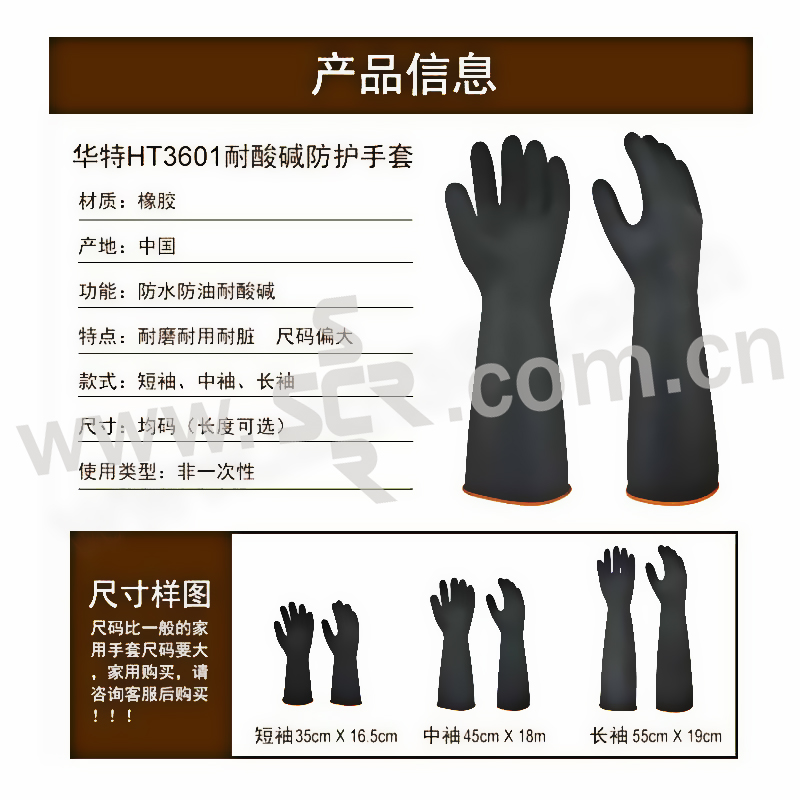 HT/华特 耐酸碱手套 35# HT3601 S 长35cm 掌围25cm 掌宽12.5cm 手套口宽16.5cm 187g 1双