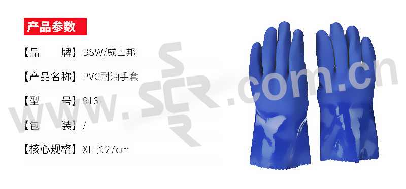 BSW/威士邦 PVC耐油手套 916 XL 长27cm 1付