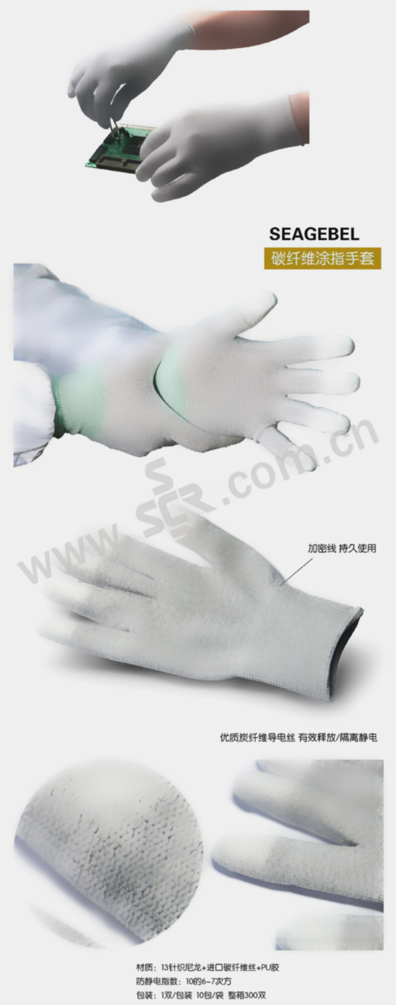 SEAGEBEL/希洁贝尔 防静电碳纤维手套 SEL-2381 S 灰色 1副