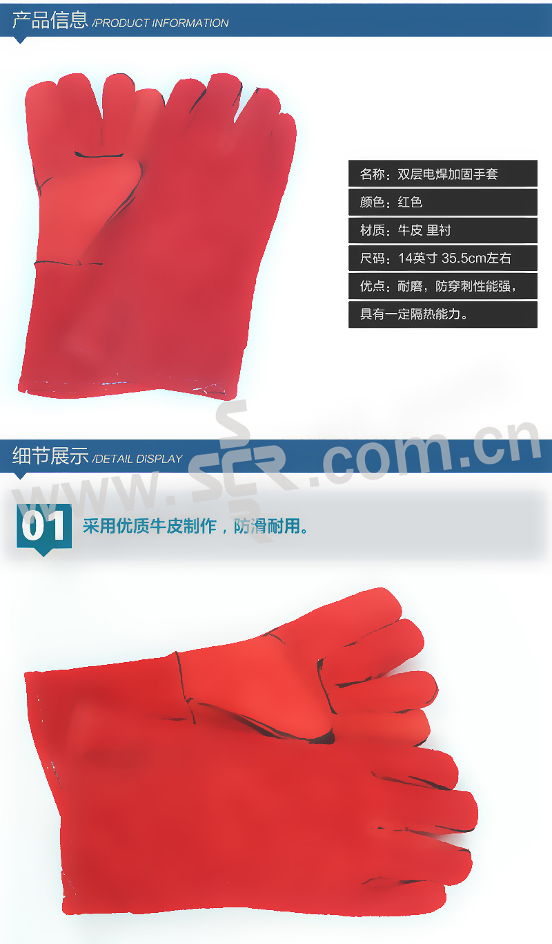 FUXING/伏兴 牛皮电焊手套 FX659 L 长35.5cm 红色加绒款 10双 1袋