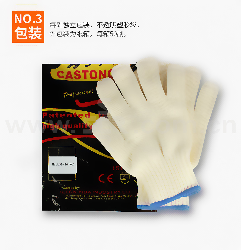 ·主要面料为间位芳纶(Meta Aramid)弹性针织布,耐温300℃,持续时间15-20秒,防割且耐磨,手型舒适灵活