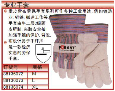 ·手套由牛二层C级颈皮所制,夹胶安全袖加强手腕的保护,背发,布设计易于手汗挥 ·是一款经济实惠的劳保手套。