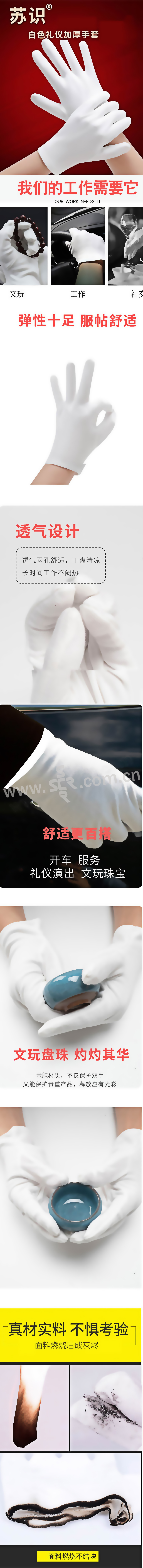 SS/苏识 白色纯棉礼仪加厚手套 S-ST083 均码 1双