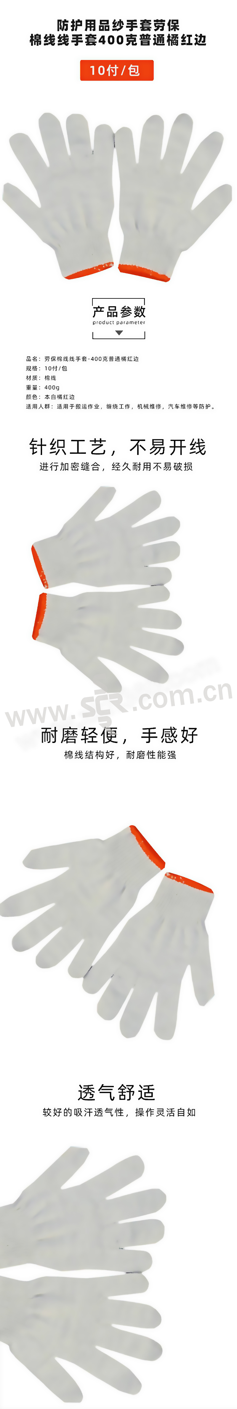 SS/苏识 防护用品纱手套 S-ST014 均码 橘红边 10付 1包