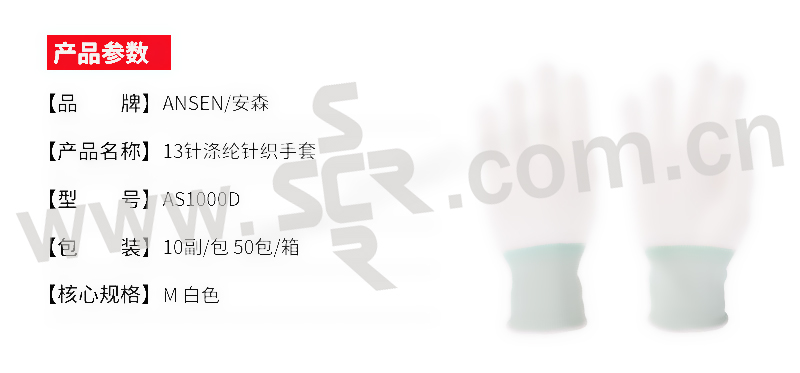 ANSEN/安森 13针涤纶针织手套 AS1000D M 白色 1包