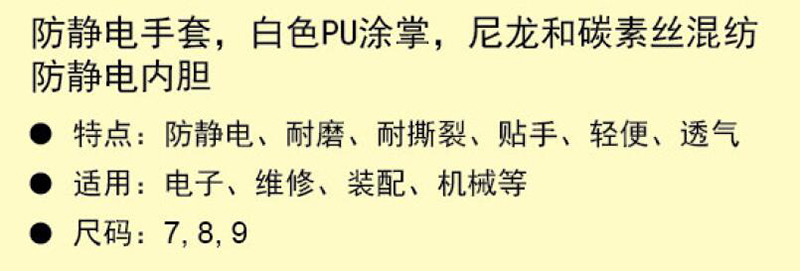 ·防静电、耐磨、耐撕裂、贴手、轻便、透气
