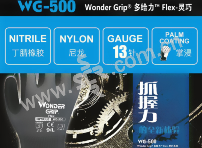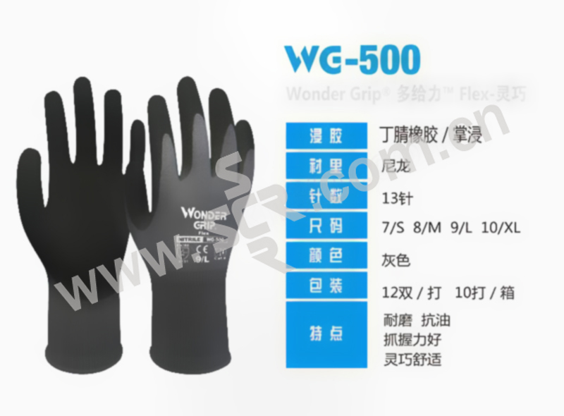 WONDERGRIP/多给力 Flex磨砂丁腈涂掌作业手套 WG-500 S 1副