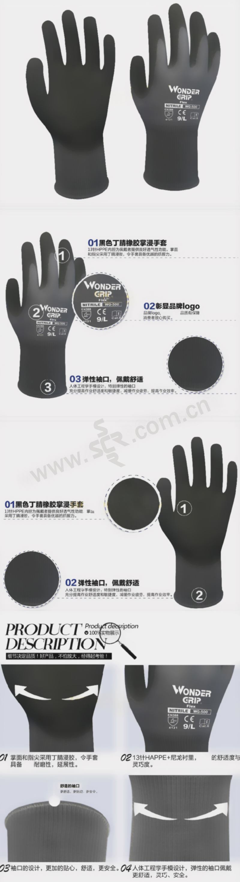 ·人体工学手型设计,很好的舒适度和灵巧度,有效减缓作业疲劳