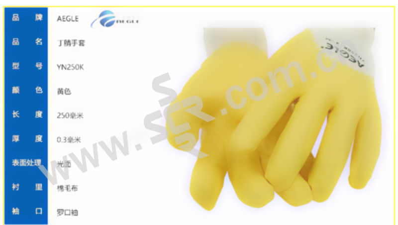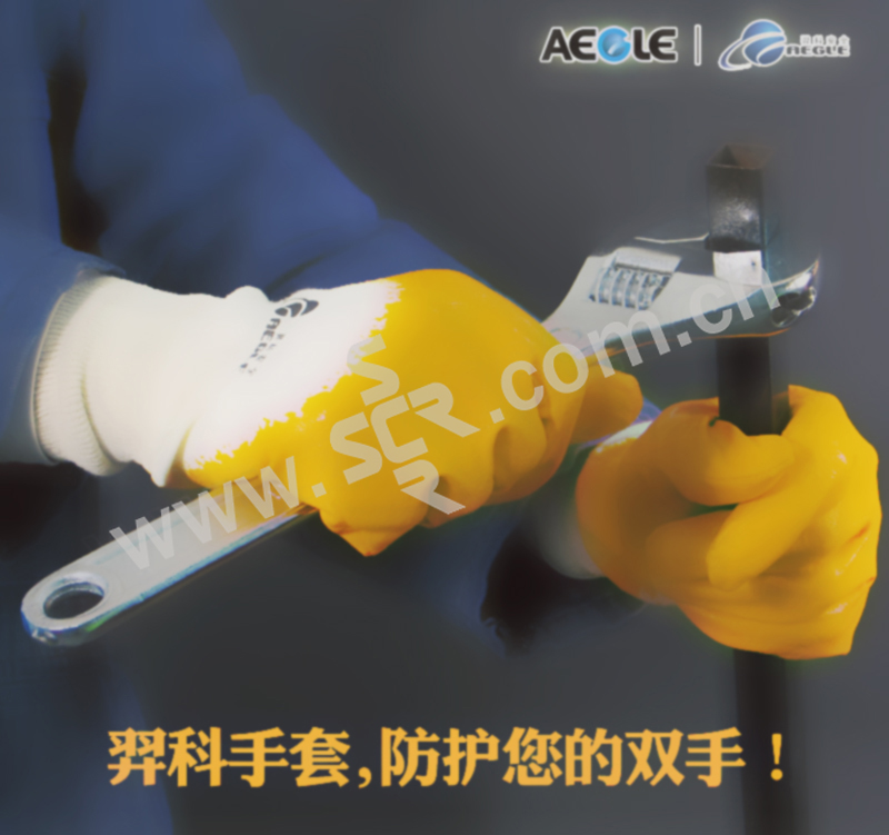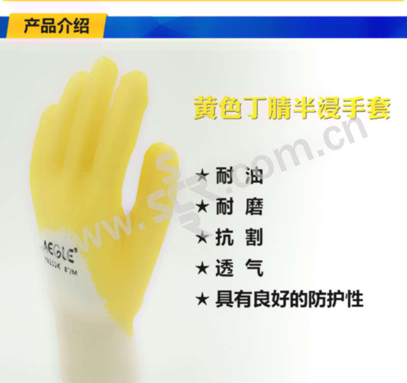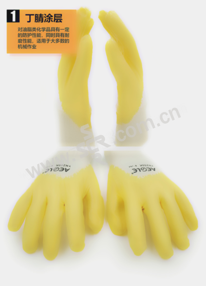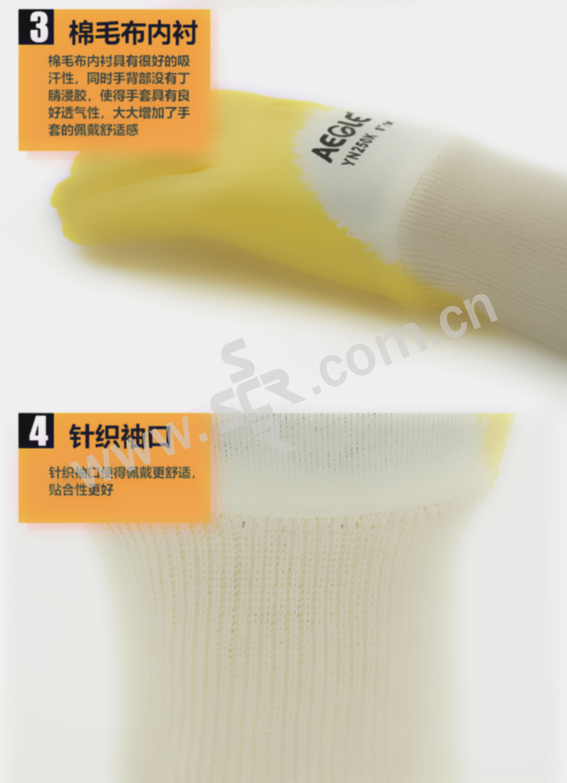 AEGLE/羿科 棉毛布丁腈半浸手套(罗口袖) 60604102 9码 黄色 1副