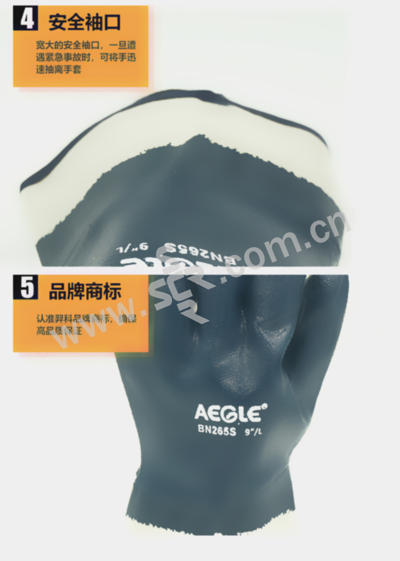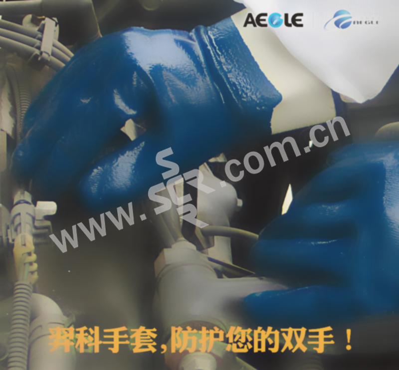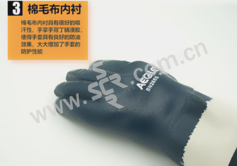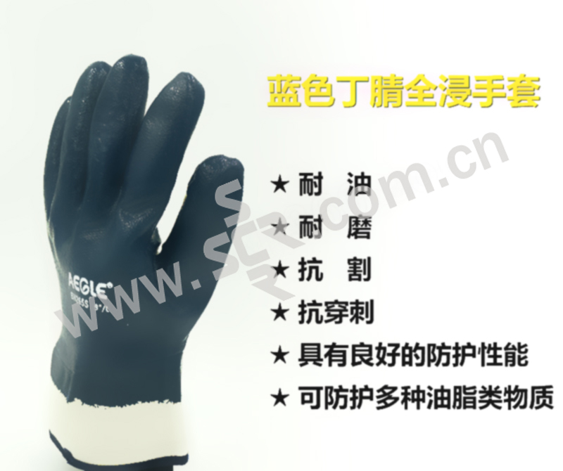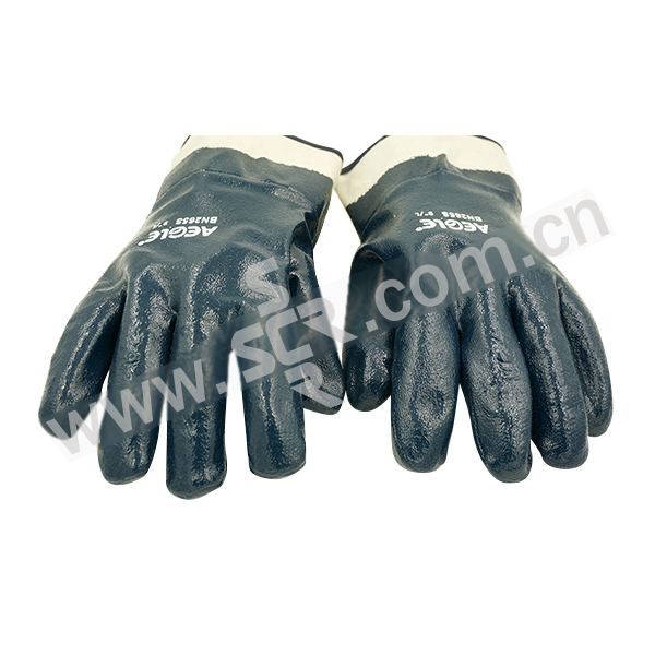 AEGLE/羿科 绒布丁腈全浸手套(安全袖) 60604101 9码 深蓝色 1副