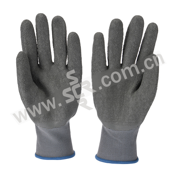 ·十三针尼龙乳胶皱纹3/4浸手套,灰色