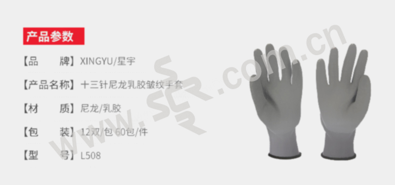 XINGYU/星宇 十三针尼龙乳胶皱纹手套 L508 8码 灰色 1双