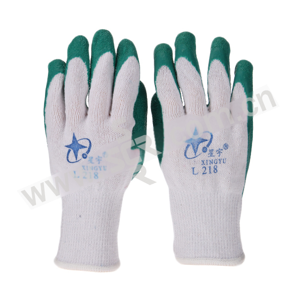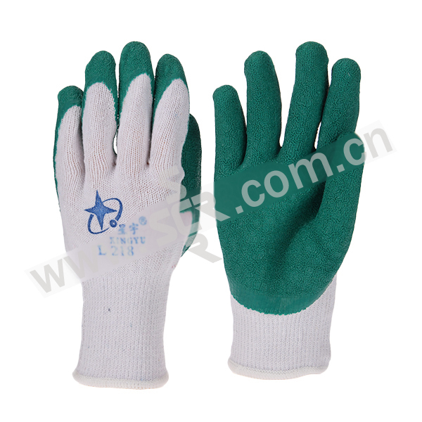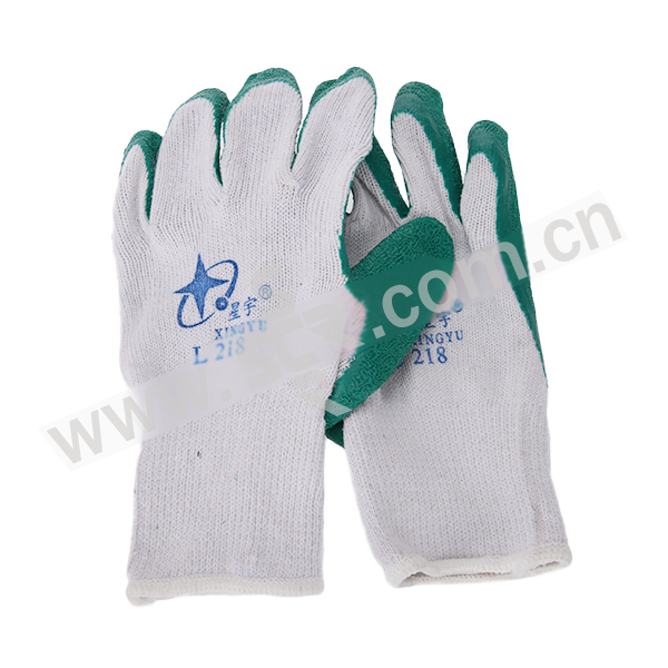 XINGYU/星宇 十针粗涤乳胶纱皱纹手套 L218 均码 绿色 12双 1打