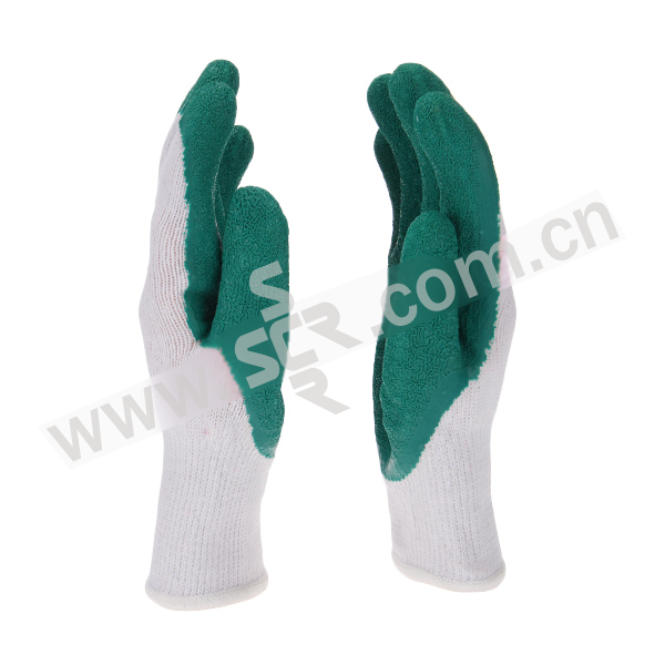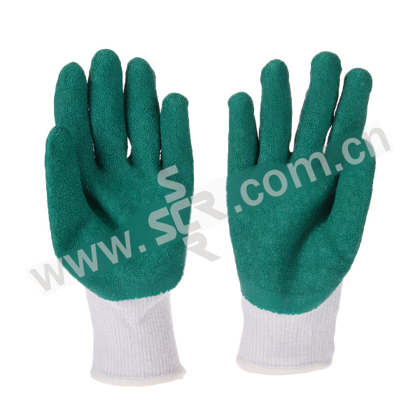 ·十针粗涤棉纱线乳胶皱纹手套,绿色
