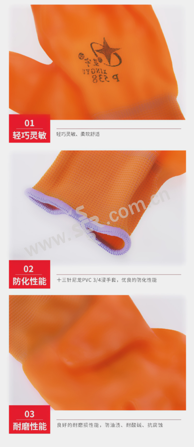 ·十三针尼龙PVC 3/4浸手套,橙色