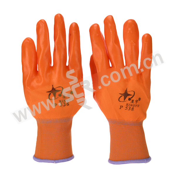XINGYU/星宇 十三针彩尼龙PVC半浸手套 P538 M(均码) 橘色 1副