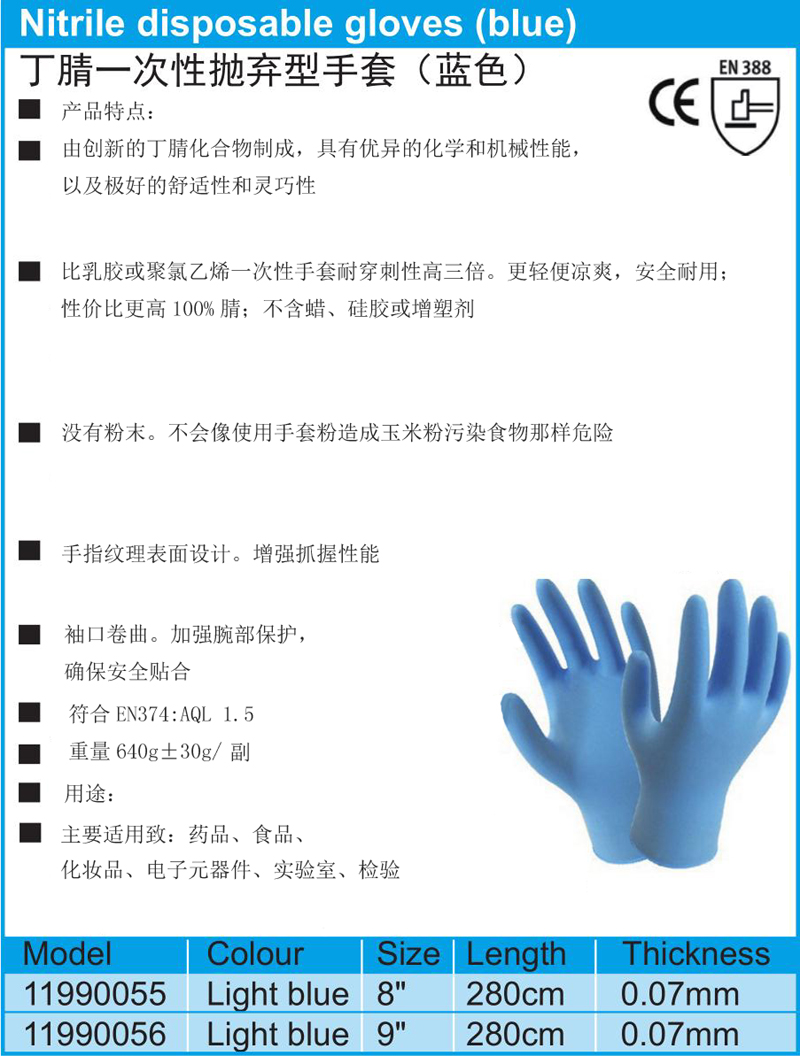 丁腈一次性抛弃型手套(蓝色)