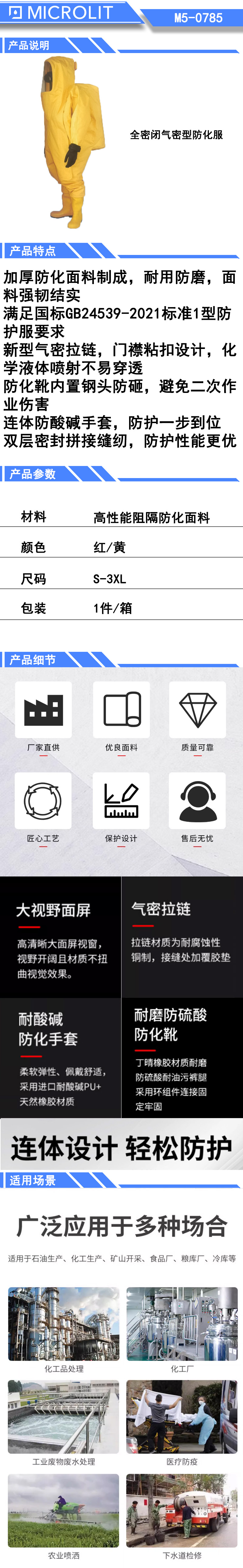 * 满足国标GB24539-2021标准1型防护服要求;