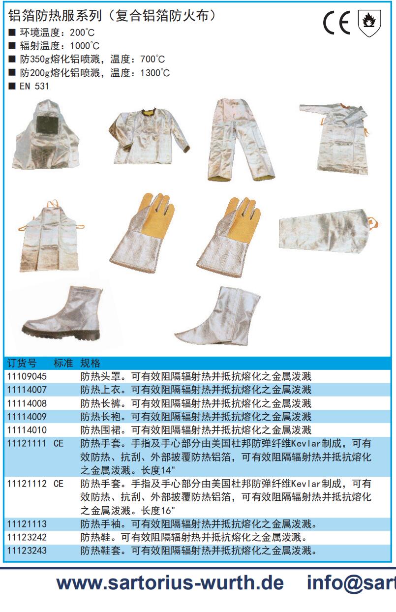 ·可有效阻隔辐射热并抵抗熔化之金属泼溅 ·环境温度:200℃ ·辐射温度:1000℃ ·防350g熔化铝喷溅,温度:700℃ ·防200g熔化铝喷溅,温度:1300℃ ·EN531