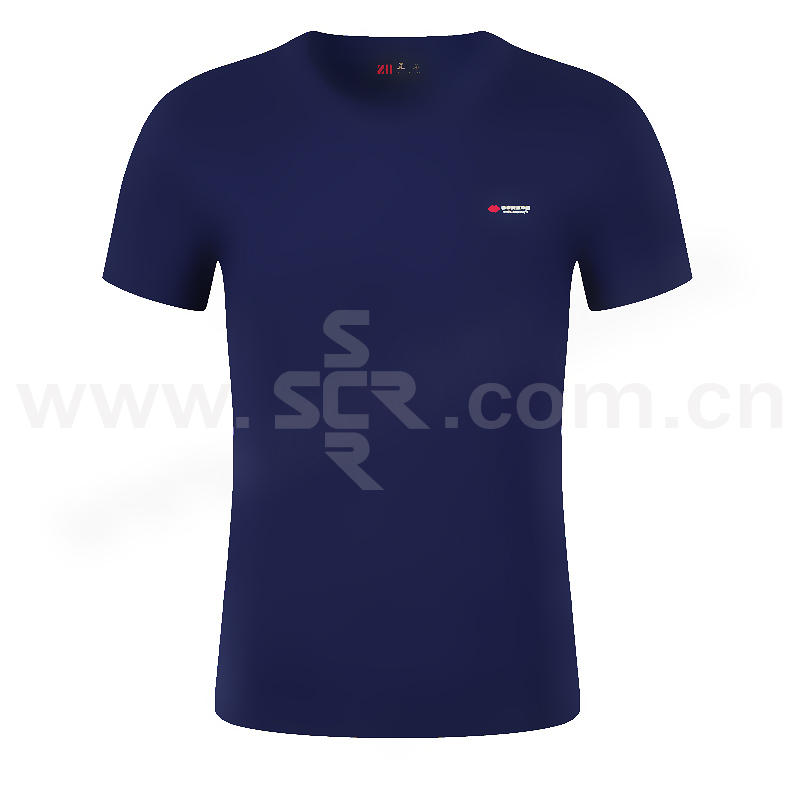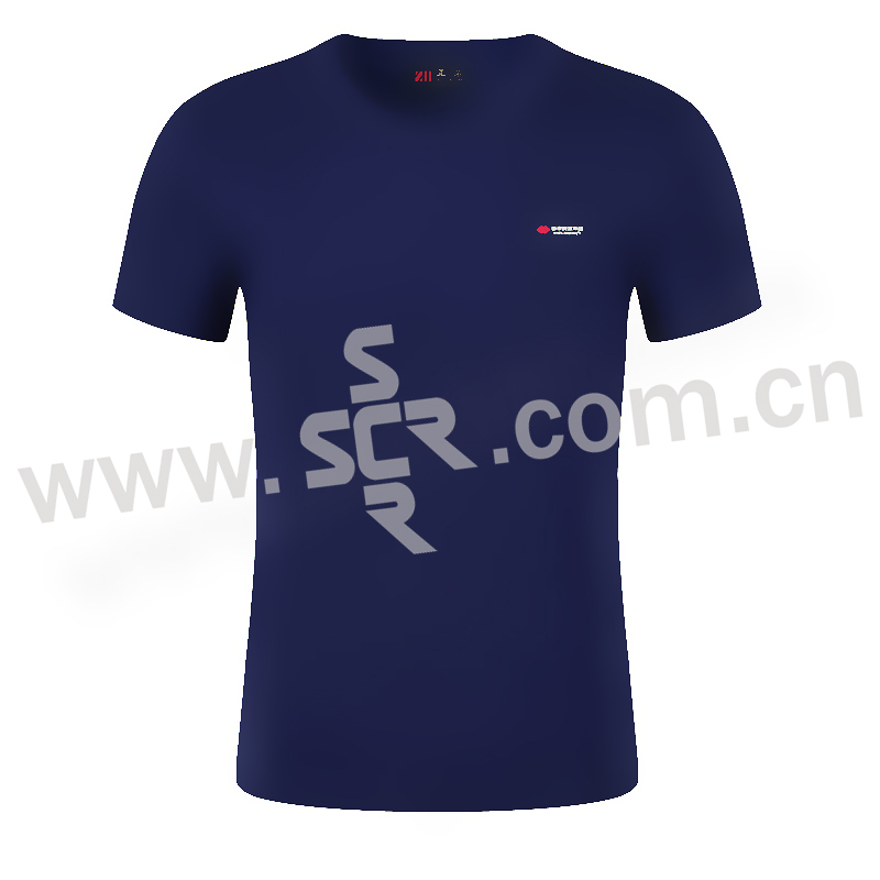 ·款式:臧蓝色/白多色可选罗纹圆领·产品性能:柔软舒适、清凉透气、不易变形掉色·适用范围:多行业环境、男女均可、多场所适用·详细规格参数:丝光棉精纺纱针织面料·规格尺码:155#-190#·工艺:立体裁剪、精工细作、时尚简洁、修身设计、定制logo