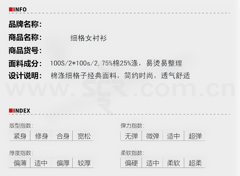 ·棉涤细格子经典面料,简约时尚,透气舒适