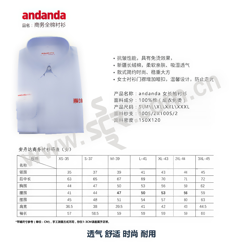 ANWIN 全棉免烫衬衫 109003 女款 1件
