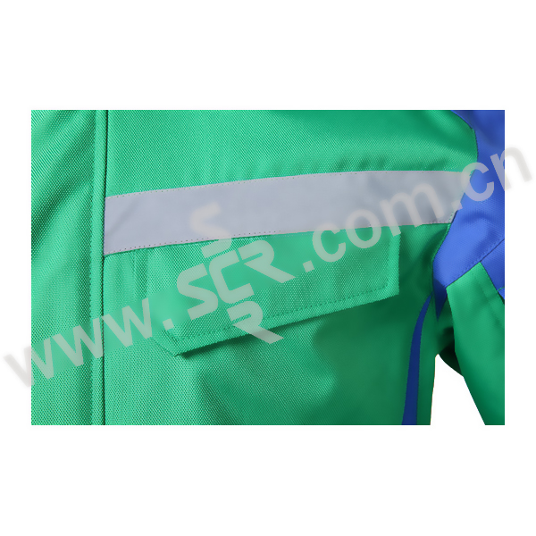 ·面料有防水透气功能,基底材料通过EN471认证,牛津布涂层600D 100%T面料,耐磨、牢度好。