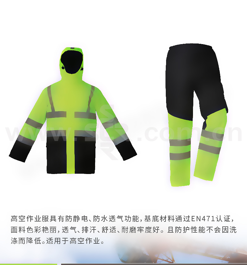 ·面料有防水透气功能,基底材料通过EN471认证,牛津布涂层600D 100%T面料,耐磨、牢度好。