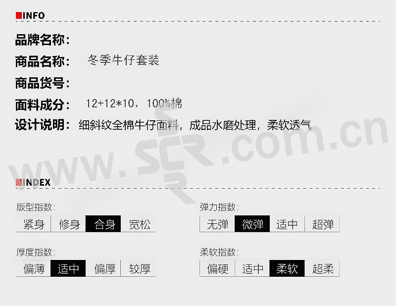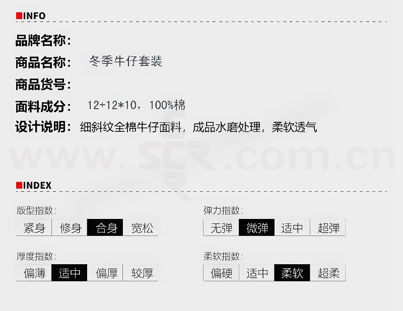 ·采用品牌男装高端牛仔面料,使用进口染料染整,抗氧化效果好,光泽度好