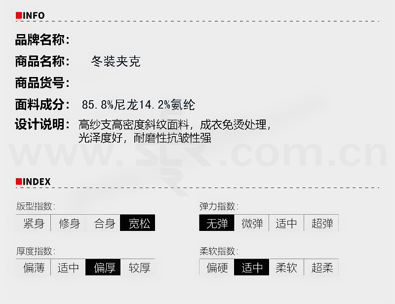 ·锦棉加弹面料,修身时尚,光泽度好,耐磨性抗皱性强