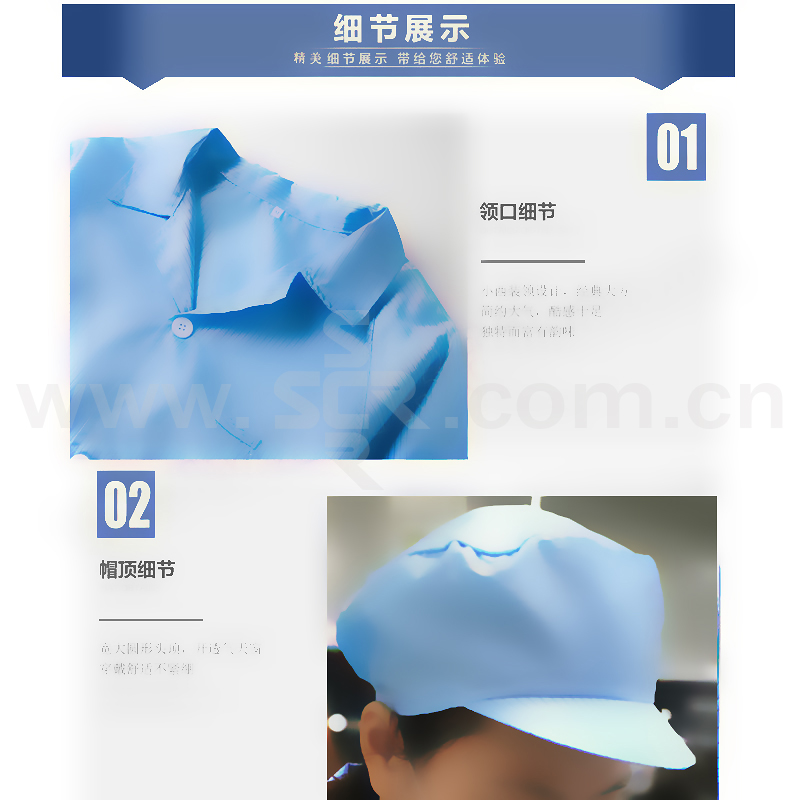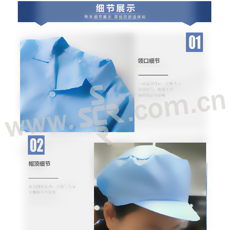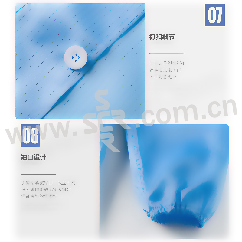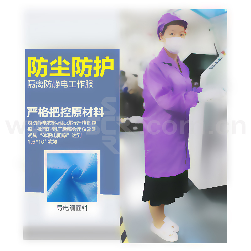 ·防静电无尘服面料采用并丝加工工艺,防静电性能优良,能够有效地释放人体静电电荷防静电性能