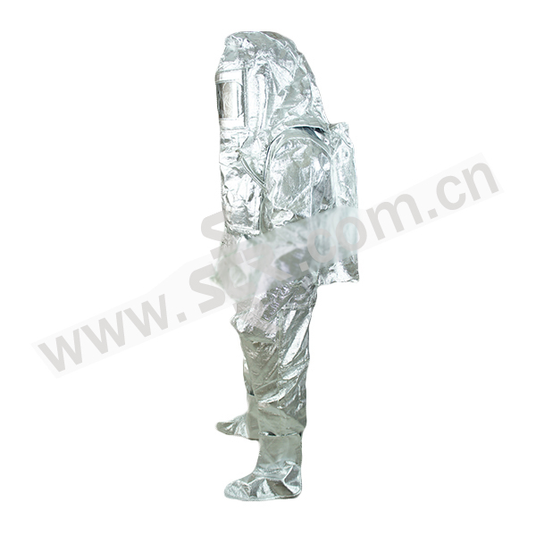 ·整套隔热服包括上衣、裤子、镀铬视片大头罩、手套和脚罩·能反射90%以上的辐射热·接近300℃高温时可达1小时;500℃高温时可达30分钟;在温度800℃距火源1.75m时2min服装内表面温度不大于25℃;可瞬间接近1000℃的高温环境·阻燃性能:损毁长度4mm,续燃时间0S,阴燃时间0s。无熔融、滴落现象·剥离强力:≥9N/30mm·断裂强力:≥650N·耐静水压性能:耐静水压≥17KPa·接缝断裂强力:≥400N·硬质附