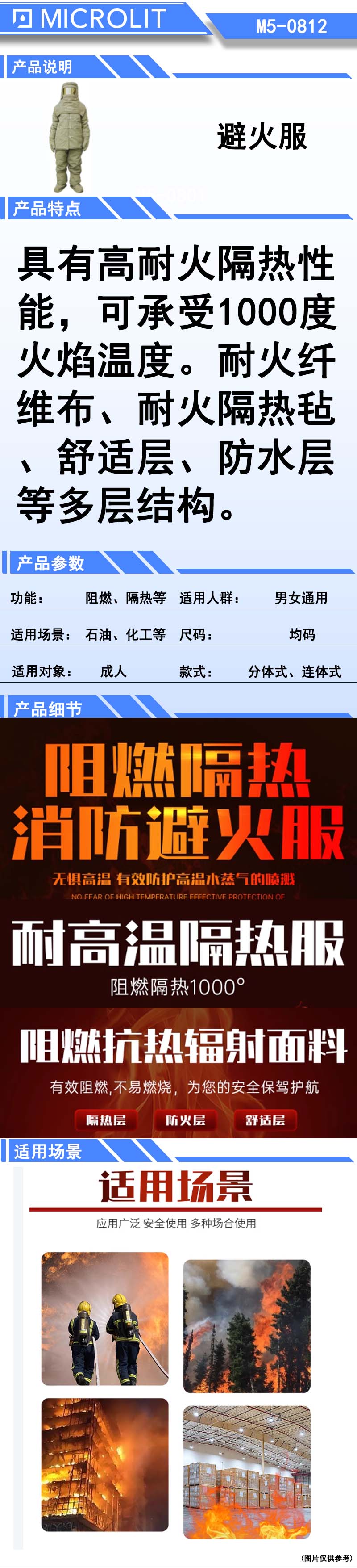 用于消防员短时间穿越1000度火区进行抢险救援作业。