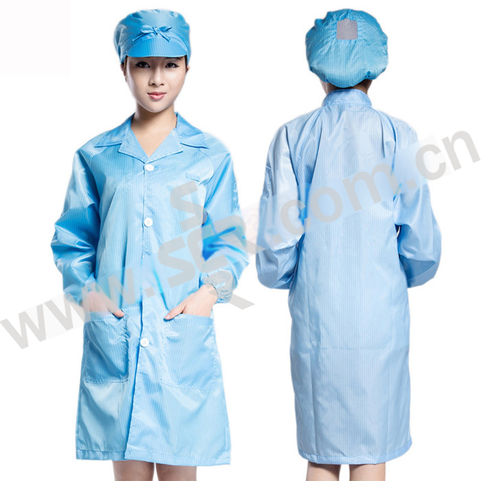 COMOFAJE/康惠杰 条纹无尘防静电防护服 FJDDGL001 M 蓝色 1件