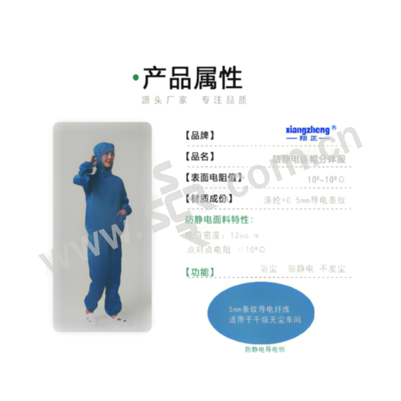 ·防静电无尘服面料本身不发尘、不粘尘、阻隔性好、高密度、高强度