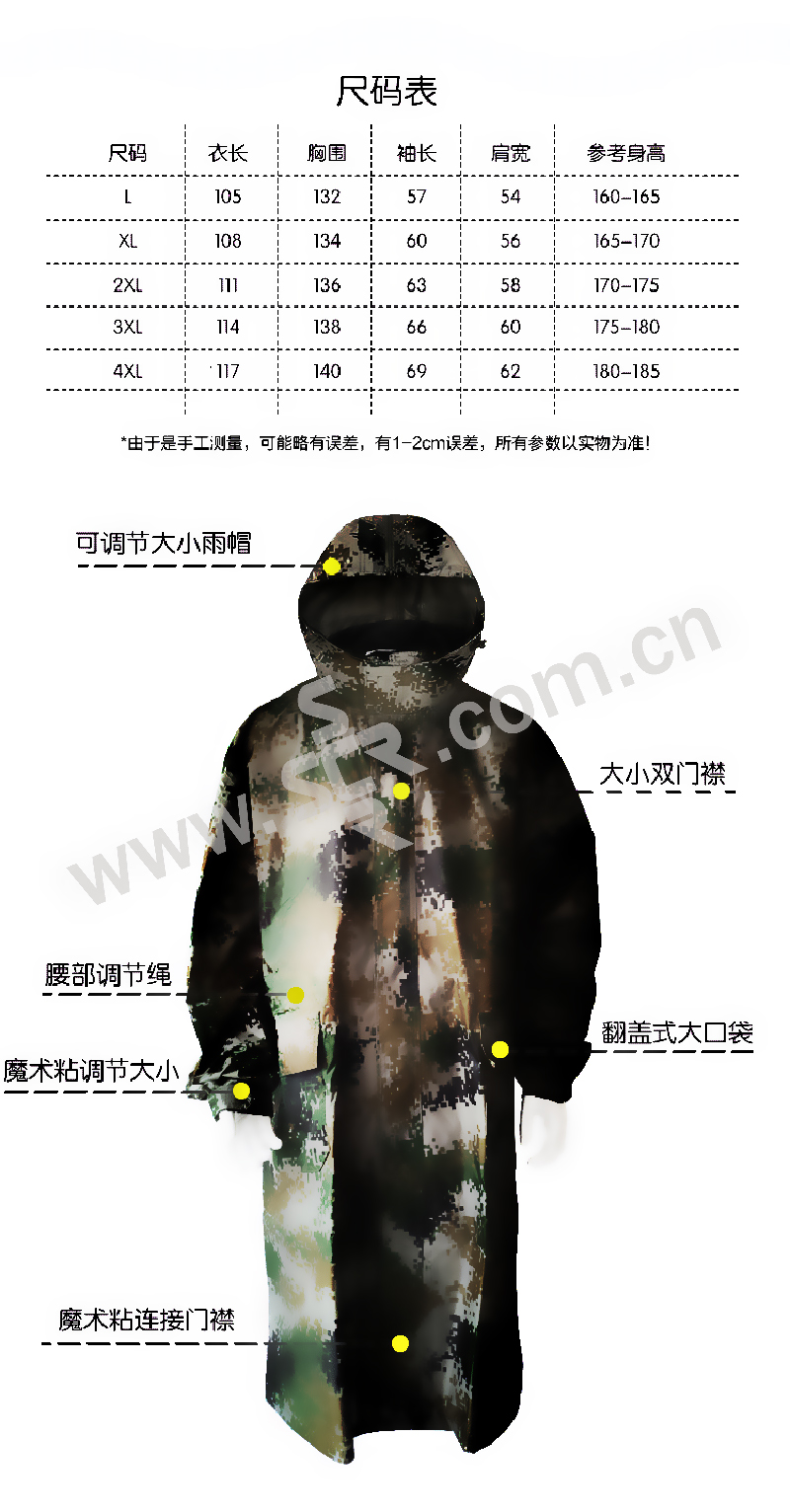 SAFEWARE/安赛瑞 迷彩长款连体雨衣 26044 L(165码) 1件
