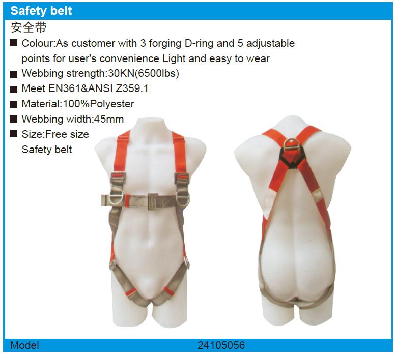 织带强度:30KN(6500磅) 符合EN361和ANSI Z359.1 材质:100%聚酯纤维 织带宽度:45mm