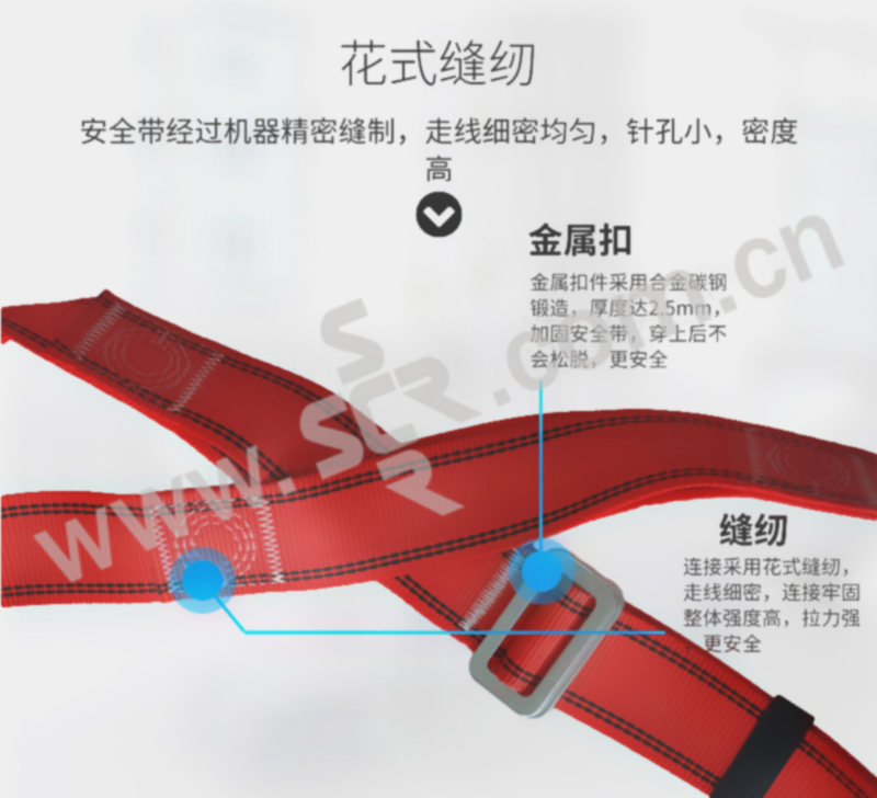 ·安全带材质采用涤纶长丝,抗冲击性更强,耐磨、耐腐蚀