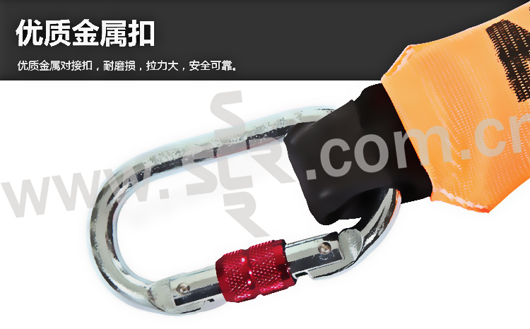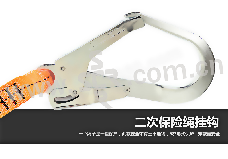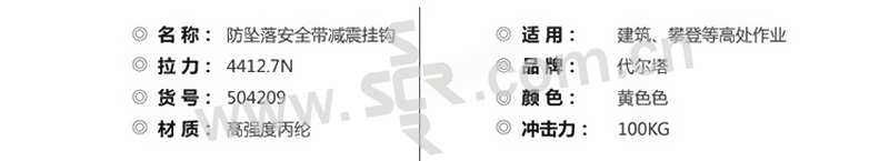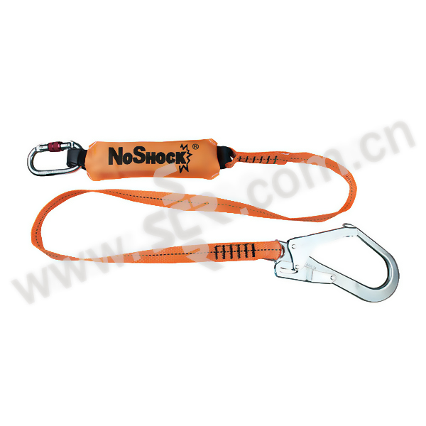 ·NOSHOCK系列单大钩减震绳·聚酯纤维编织带,配有1个钢制O型钩AM002和1个钢制大钩AM022·长1.8米,缓冲包全部打开长度3.5米,重量1.1kg·通过电力工业/电力安全工具质量监督检验测试中心检测