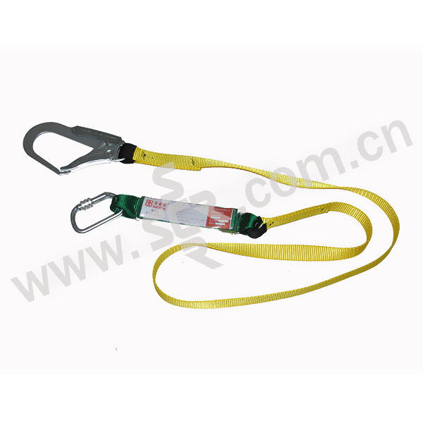 ·配有缓冲包(控制坠落捕捉力不大于900Lbs),织带宽度25毫米,配有1个脚手架挂钩和1个连接环