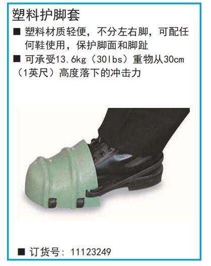 ·塑料材质轻便,不分左右脚,可配任何鞋使用,保护脚面和脚趾 ·可承受13.6kg(30lbs)重物从30cm(1英尺)高度落下的冲击力