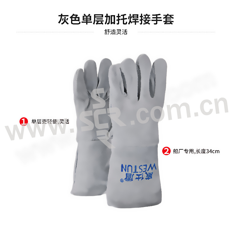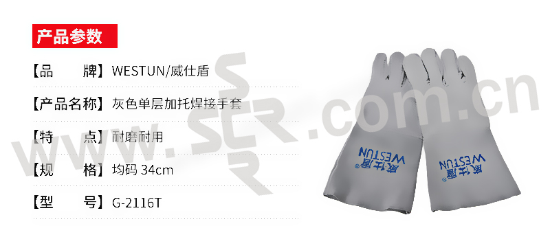 WESTUN/威仕盾 灰色单层加托焊接手套 G-2116T 均码 约34cm 1副