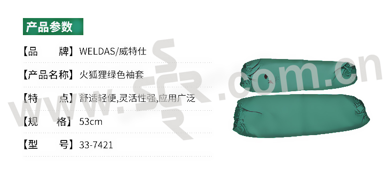 WELDAS/威特仕 火狐狸绿色袖套 33-7421 53cm 1副
