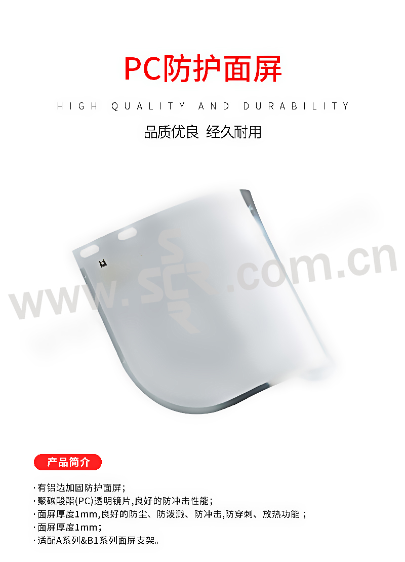 BLUE EAGLE/蓝鹰 含铝边PC防护面屏 FC48 适配B1&A系列面屏支架 1个