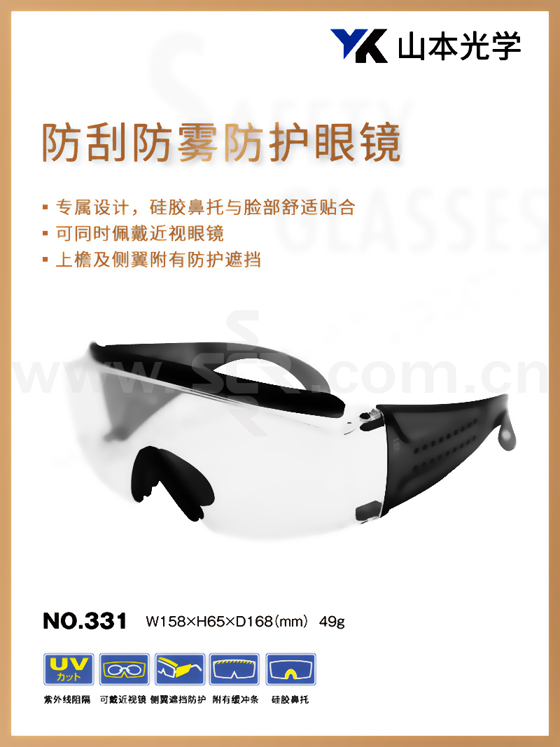 YK/山本光学 防护眼镜 NO.331 PET AF 防雾防刮擦 1副