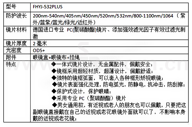 FULASER/为你激光 激光护目镜 FHYJ-532PLUS 防护波200~540nm/800~1100nm 1个