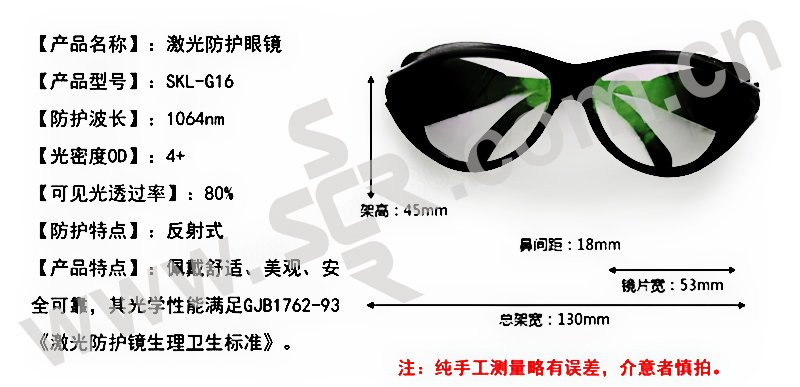 ·其光学安全性能完全满足GJB1762-93《激光防护镜生理卫生标准》